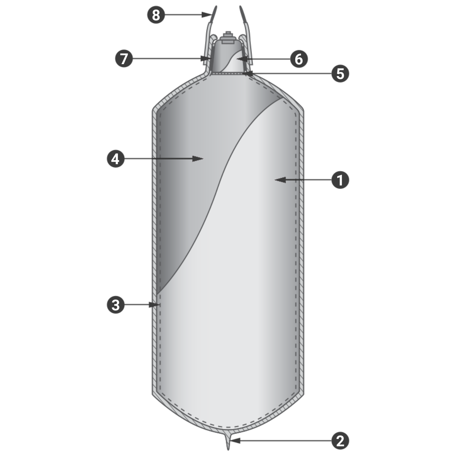 - Technical textile — with low elasticity at the ends to compensate the increase in air volume caused by high temperatures and to maintain a constant pressure of about 350 mbar (5.1 psi).